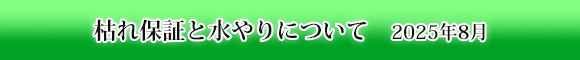 それらの原因以外で給水作業(水やり)などを間違えない様、しっかりして頂いたにも関わらず最初の時期に枯れてしまった場合の枯れ補償のご相談に関しましてまずはお写真を頂きますようお願い致します。
